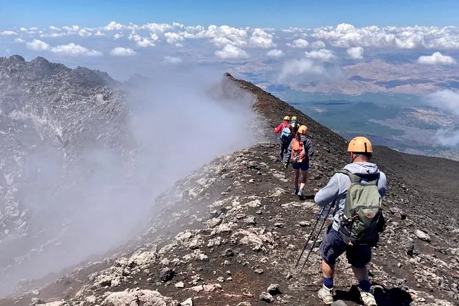 Votre journée comprend l’accompagnement d’un guide volcanologue diplômé tout au long de la montée en véhicule tout-terrain et de la randonnée à pied ; les frais d’entrée sur l’Etna ; l’utilisation de bâtons de marche, chaussures robustes (qui ont vraiment sauvé mes chevilles), casques pour la sécurité près des évents actifs, vestes chaudes, chaussettes de rechange et un sac à dos supplémentaire si besoin ; ainsi qu’une assurance pendant votre aventure sur le volcan le plus célèbre de Sicile.