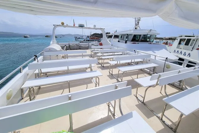 Votre journée comprend une assurance passager et la TVA. Vous profiterez d’une excursion en bateau toute la journée dans l’archipel de La Maddalena, avec plusieurs arrêts baignade à Spargi et Santa Maria, ainsi qu’une vue sur la plage rose de Budelli. L’équipage local est toujours présent pour vous aider ou vous guider. Des repas et boissons en option, dont des pâtes fraîches préparées à bord, sont disponibles avant le retour au port de Palau dans l’après-midi.