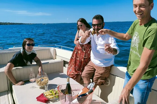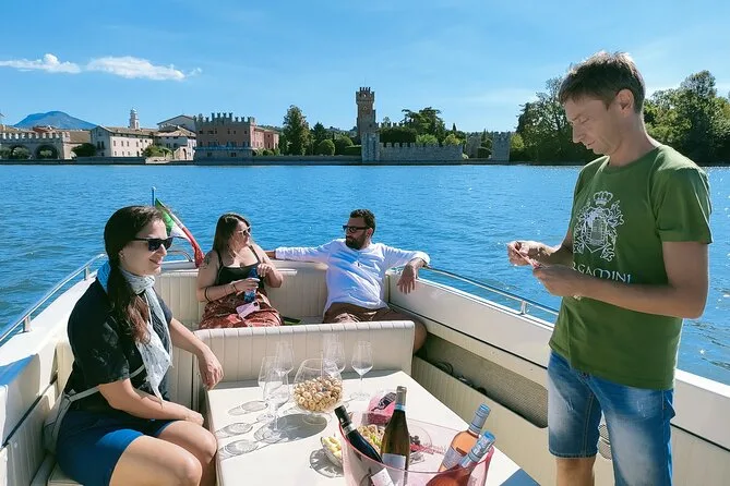 Embarquez à Lazise avec un guide local pour une balade privée en bateau le long des rives du lac de Garde, passez devant châteaux et villas visibles uniquement depuis l’eau, dégustez trois vins locaux avec des en-cas à la Villa Canossa, et laissez-vous porter près de la paisible Punta San Vigilio avant de revenir — rires, histoires et souvenirs garantis.