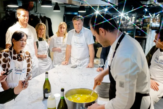 Votre journée comprend la fabrication de pâtes maison (tagliatelles et raviolis), une démonstration de gelato avec ingrédients de saison, l’utilisation de tabliers et ustensiles, du vin ou des boissons à volonté au déjeuner, les recettes numériques à emporter sur téléphone ou mail, et un petit certificat de fin d’atelier en souvenir avant de repartir dans les rues de Milan.