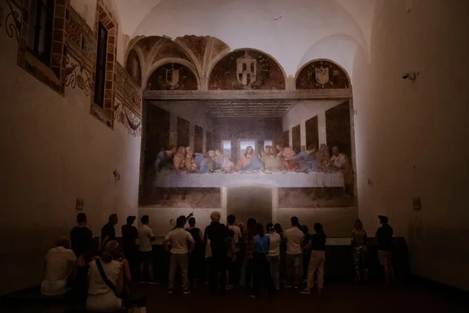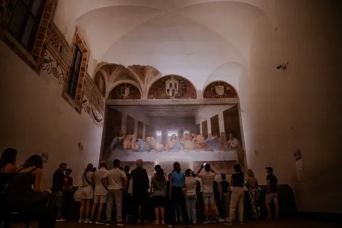 Votre journée comprend un billet coupe-file à heure précise pour le Dernier Souper à Santa Maria delle Grazie à Milan, ainsi qu’un guide local agréé qui vous racontera des anecdotes avant la visite. Toutes les formalités, comme le contrôle d’identité, sont prises en charge pour que vous puissiez profiter pleinement du chef-d’œuvre de Vinci sans stress.