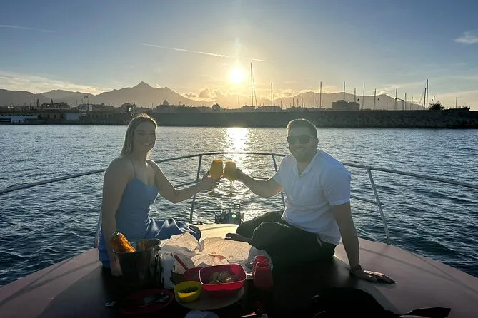 Vous partirez de Palermo au moment où la ville s’adoucit sous la lumière du soir, dégusterez des spécialités siciliennes fraîches au mouillage près de la Grotte de la Reine, siroterez un Aperol Spritz (ou un Coca si vous préférez), et ferez du snorkeling avec tout le matériel fourni. Le capitaine garde une ambiance détendue — attendez-vous à rire, écouter des histoires locales et peut-être goûter un cannolo fait maison en admirant le coucher de soleil sur la baie.