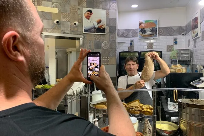 Vous dégusterez des snacks siciliens traditionnels comme arancini, panelle, pâtisseries ou gelato—sans fruits de mer.