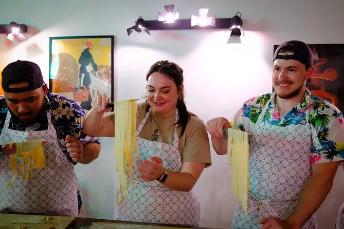 Votre journée comprend tous les ingrédients frais pour préparer pâtes et tiramisu maison, un accompagnement pas à pas par un chef local expert dans un petit groupe près de la gare Termini, eau et boissons sans alcool à volonté, plus un verre de prosecco ou vin (avec options sans alcool), des choix végétariens si besoin, et un ebook de recettes à emporter après le repas partagé.