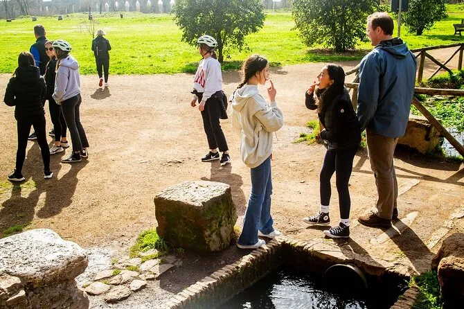 Partez en e-bike sur la Via Appia antique avec un guide local, découvrez des coins tranquilles de campagne et des ruines romaines, descendez dans les catacombes si vous choisissez la version longue, et faites une pause déjeuner ou apéritif sous les grands aqueducs. Attendez-vous à des rires, des moments de calme inattendus, et des histoires qui restent longtemps après le retour.