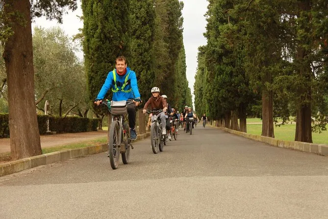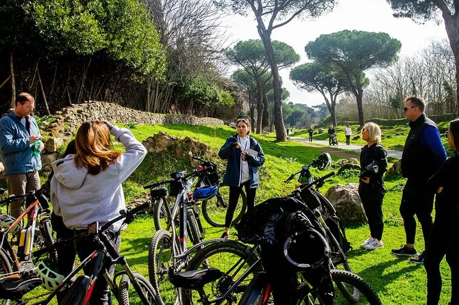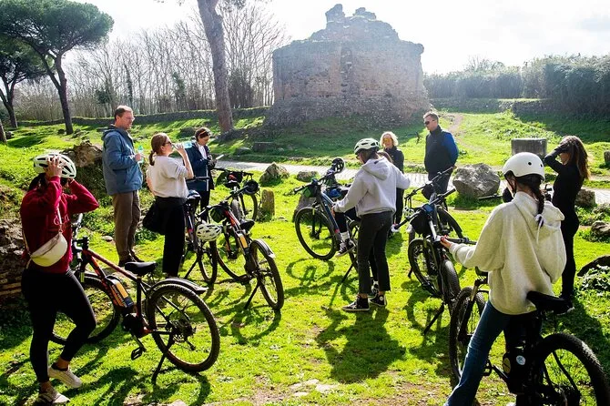 Votre journée comprend l’utilisation d’un vélo électrique haut de gamme avec casque et support téléphone (même un porte-guidon), les commentaires d’un guide local expert tout au long du parcours — ainsi que l’entrée aux Catacombes si vous choisissez cette option — et un délicieux déjeuner ou apéritif dégusté au pied des anciens aqueducs de Rome avant de retourner en ville.