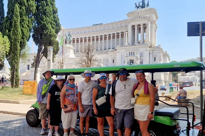 Votre journée comprend une balade de 2h30 en golfette électrique découverte dans le centre de Rome avec un guide expert ; de l’eau en bouteille est fournie ; vous visiterez les sites emblématiques comme le Colisée et la Fontaine de Trevi de l’extérieur ; des arrêts photos flexibles sont prévus ; les besoins d’accessibilité sont pris en compte — accès fauteuil roulant et sièges bébé disponibles — pour que tout le monde puisse profiter de cette découverte unique des rues historiques.