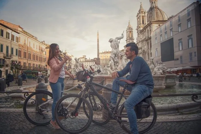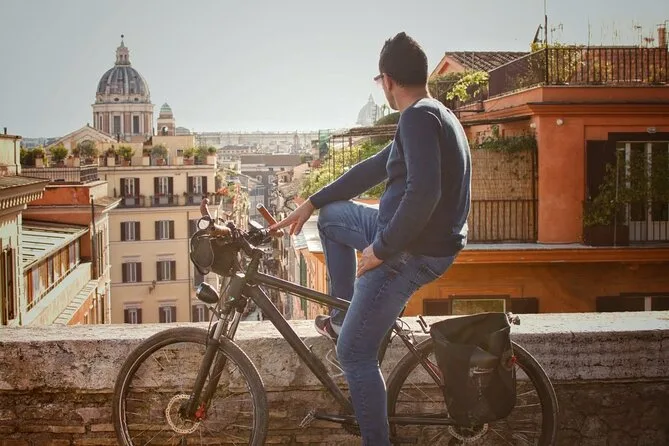 Votre journée comprend un vélo électrique et un casque pour chaque participant (plus sièges enfants ou extensions si besoin), un guide local sympa qui vous emmène sur des itinéraires choisis au cœur de Rome, des ponchos en cas de pluie, et même des réductions spéciales avec votre Roma 'n Bike Card — le tout au départ de la piste cyclable du Tibre pour un accès facile.