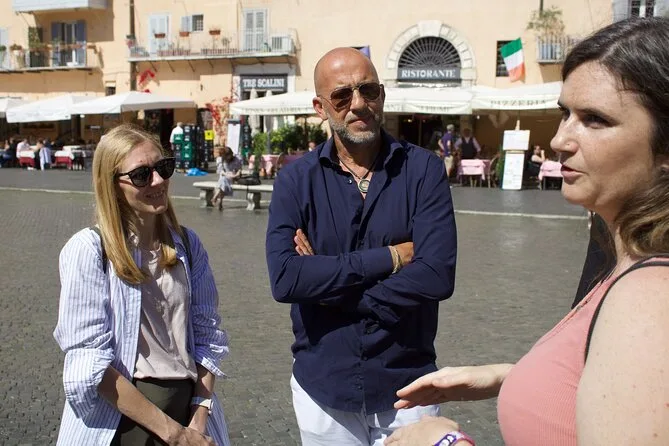 Le Panthéon vu de l’extérieur est impressionnant — comment un bâtiment si vieux peut-il encore paraître si solide ? Notre guide nous a raconté les astuces d’Hadrien avec un sourire comme s’il l’avait construit lui-même (ce n’était pas le cas). On a fini sur la Piazza Navona, entourés d’artistes de rue et d’enfants qui couraient après les pigeons. Quelqu’un a acheté une glace ; un autre a essayé de prononcer « Bernini » et a lamentablement échoué. On n’était pas pressés. Parfois, on restait simplement là à écouter l’eau jaillir de la Fontaine des Quatre Fleuves de Bernini, ou à observer les locaux gesticuler en sirotant leur café. Je repense encore à cette vue sur la piazza au coucher du soleil — pas spectaculaire, juste parfaitement paisible.