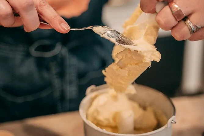 Votre expérience comprend un tablier à utiliser pendant l’atelier, tous les ingrédients frais pour le gelato et le semifreddo, l’accompagnement d’un chef professionnel tout au long de l’atelier, ainsi qu’un livre de recettes à emporter chez vous, sans oublier de nombreuses dégustations gourmandes.