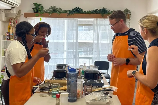 Votre expérience inclut tous les frais et taxes, ainsi qu’une balade guidée intime dans des boutiques japonaises traditionnelles près du sanctuaire Osaka Tenmangu avec aide à la traduction si besoin. Ensuite, vous participerez à un atelier cuisine en anglais où tous les ingrédients sont fournis — apportez juste votre curiosité (et peut-être un bon appétit). Les transports en commun sont proches et les poussettes sont les bienvenues.