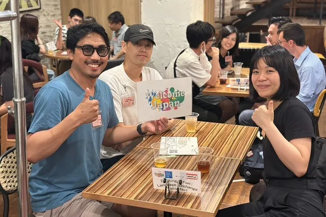 Vous êtes-vous déjà demandé si vous pouviez simplement entrer dans un café à Tokyo et vous retrouver à parler (ou du moins essayer) japonais avec des inconnus ? C’est exactement comme ça que ma soirée à Shibuya a commencé — un peu nerveux, mon ticket de boisson en main, à scruter la salle pour trouver quelqu’un d’aussi perdu que moi. Le staff m’a vite repéré et en un rien de temps, j’étais assis avec trois autres personnes — deux locaux et un voyageur espagnol qui mélangeait sans cesse « arigatou » et « adios ». Personne ne s’en est formalisé. Au contraire, tout le monde semblait soulagé quand quelqu’un faisait une erreur avant eux.