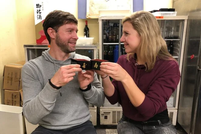 Votre soirée comprend tous les plats (sashimi, poisson grillé, peau de poulet frit, ramen), cinq boissons alcoolisées japonaises différentes comme le shochu ou le sake, une petite tasse en porcelaine souvenir utilisée pendant la visite, ainsi que l’accompagnement du guide à chaque étape — aide à la commande et conseils pour rentrer en train.