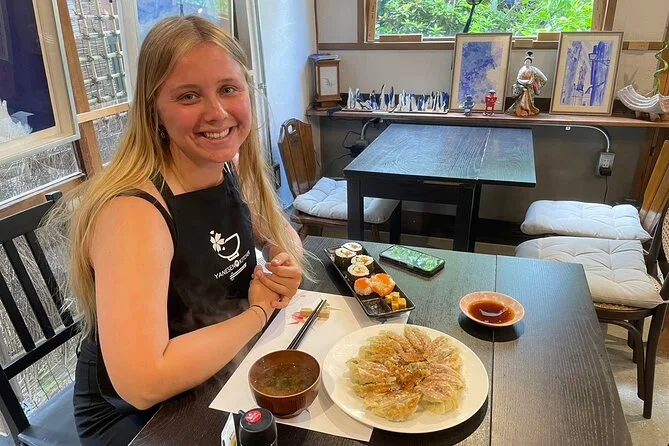 Vivez l’expérience d’une vraie maison tokyoïte à Yanaka en cuisinant côte à côte avec une hôte locale. Apprenez à préparer des bentos, des sushis ou même de l’okonomiyaki de A à Z. Initiez-vous au filetage du poisson ou à la friture du karaage en partageant des histoires autour de la table. Vous dégusterez vos plats dans une ambiance chaleureuse et conviviale, un souvenir qui reste longtemps.