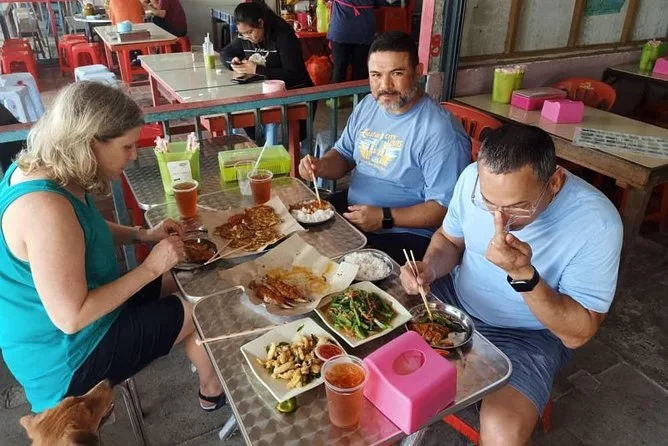 Nous nous sommes arrêtés au temple Nan Tian, en plein milieu d’un champ. L’encens flottait dans l’air tandis que les habitants accrochaient des rubans rouges à l’Arbre aux Vœux près de la plage de Redang. J’ai essayé d’en lancer un—j’ai raté deux fois avant qu’il ne s’accroche à une branche (apparemment, ça porte chance). Le déjeuner s’est déroulé au village de Bagan : tables en plastique, ventilateurs bruyants, et du poisson si frais qu’on sentait la mer. Le crabe au piment m’a laissé les doigts en feu pendant un bon moment.