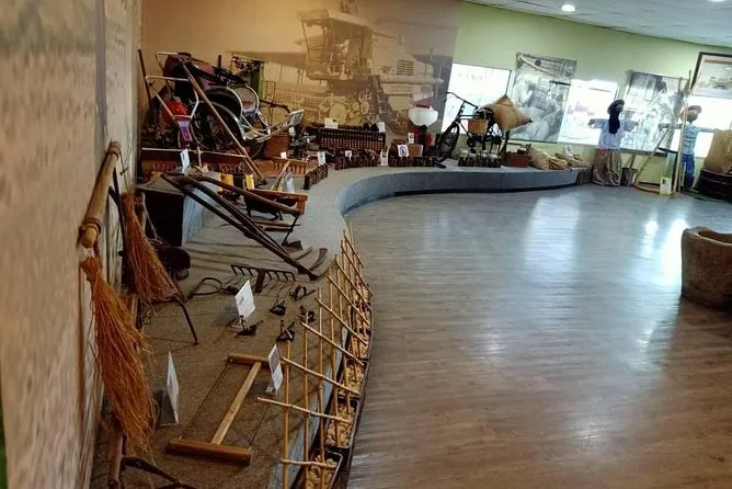 Les rizières s’étendaient à perte de vue—certaines vertes, d’autres déjà dorées. Notre guide montrait de petits oiseaux virevoltant entre les tiges ; il expliquait que les hérons apparaissent à la saison des récoltes. À l’usine de transformation du riz, un petit musée m’a appris comment le riz passe du champ boueux à notre assiette. Ce n’est pas tape-à-l’œil mais ça a une vraie âme—il y a même une vieille machine qui cliquette quand elle tourne.