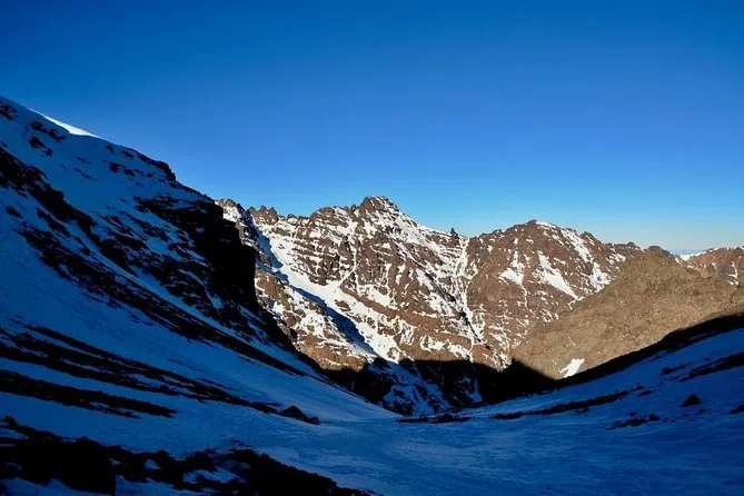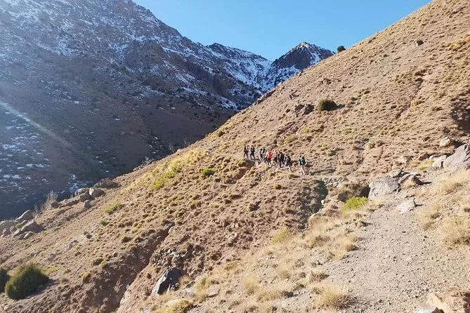 Votre aventure de deux jours comprend le transfert hôtel aller-retour depuis Marrakech, un guide de montagne expérimenté parlant anglais ou français tout au long de la randonnée, deux déjeuners (dont un pique-nique), un dîner au refuge de montagne ainsi qu’un petit déjeuner avec café ou thé chaque matin — et une nuit au refuge du Toubkal avant le retour en van vers Marrakech.