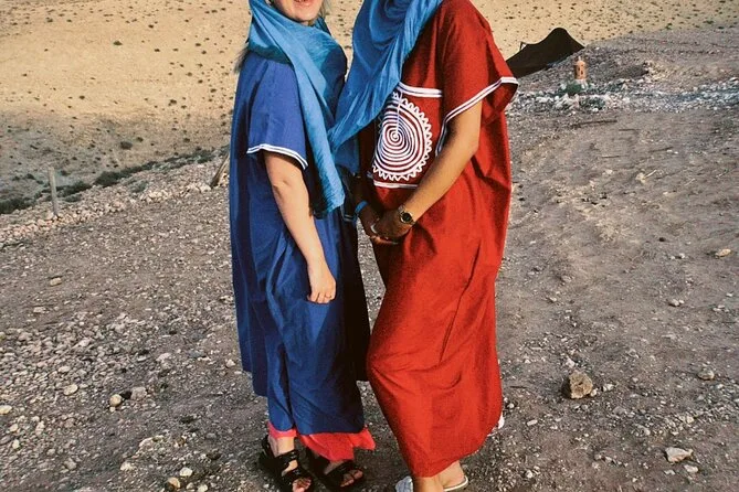 Pas besoin d’apporter quoi que ce soit de particulier — nous fournissons djellabas et turbans traditionnels avant la balade.