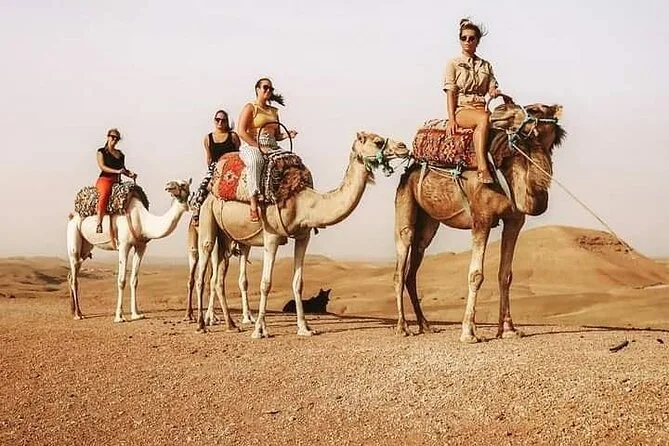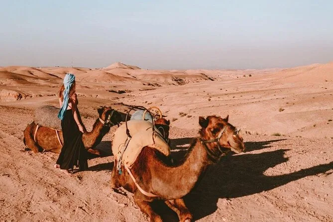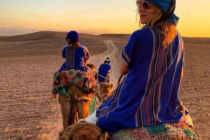 Votre expérience inclut la prise en charge et le retour à votre hôtel à Marrakech, une heure de balade à dos de chameau au coucher du soleil dans le désert d’Agafay, de l’eau en bouteille pour rester hydraté, ainsi qu’un chauffeur-guide local sympathique et tous les transports.