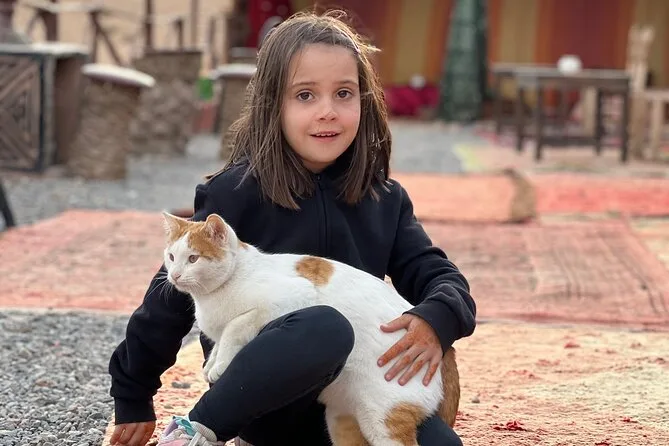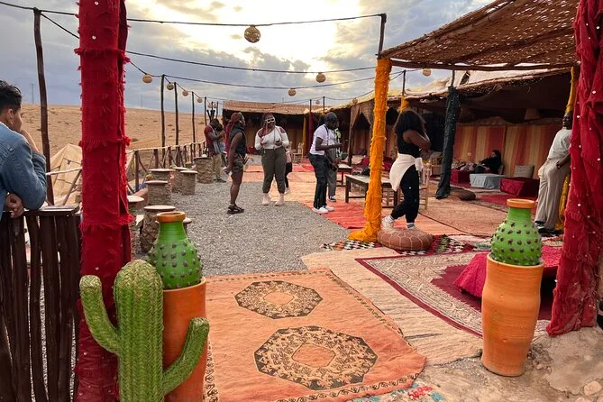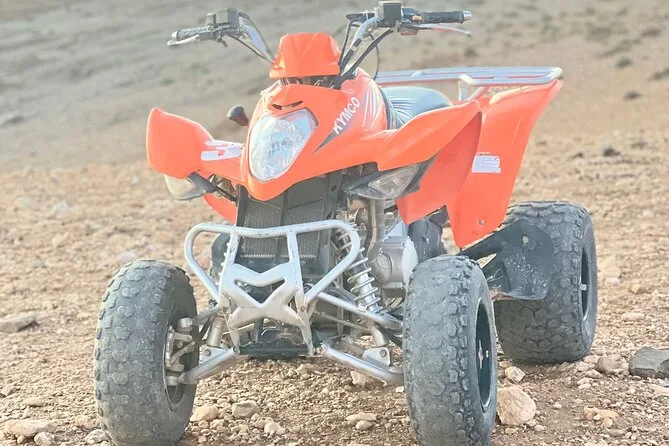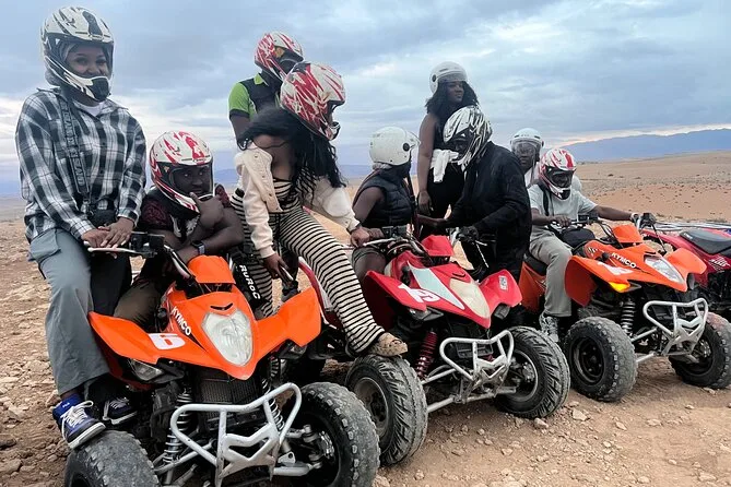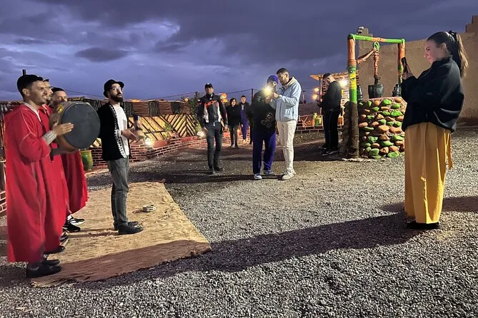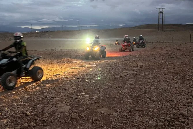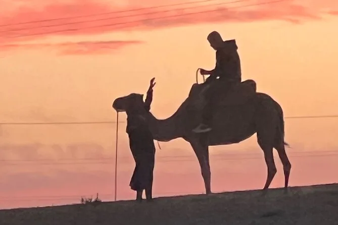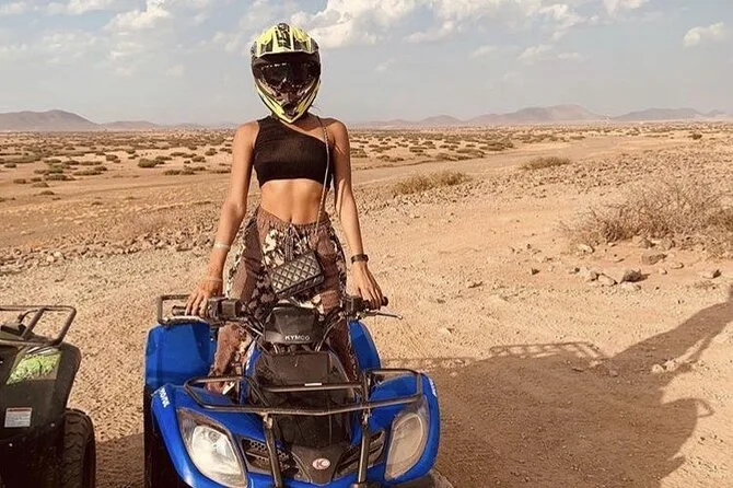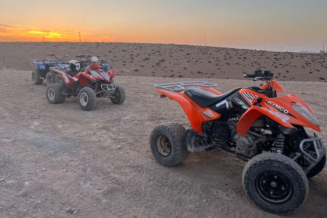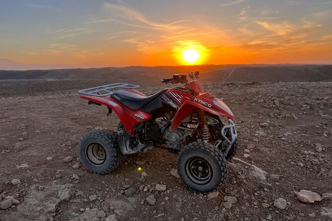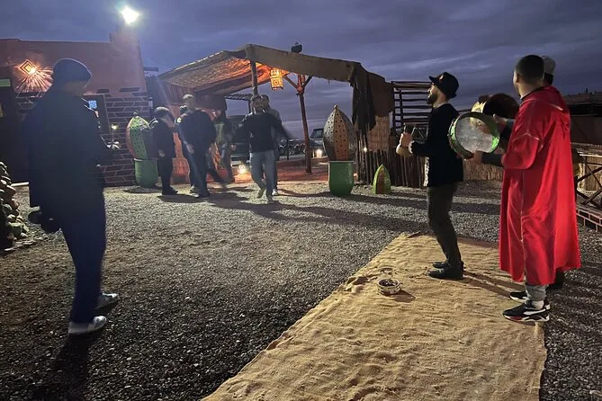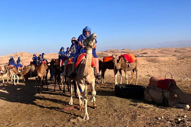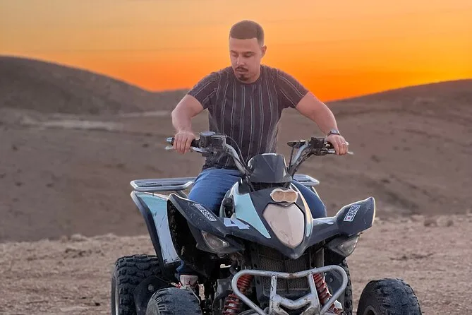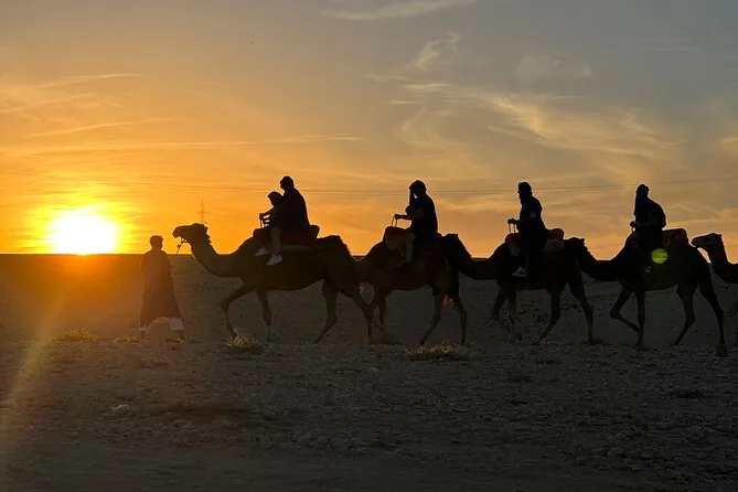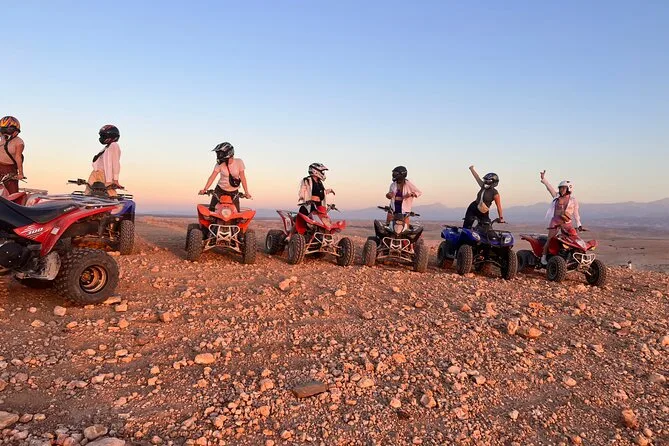 Votre journée comprend le transfert aller-retour depuis Marrakech, une session guidée en quad sur les sentiers rocheux du désert d’Agafay, une promenade d’une heure à dos de chameau au coucher du soleil (avec tenue nomade fournie), un dîner marocain traditionnel sous tente berbère avec musique live au coin du feu, ainsi que du thé marocain, de l’eau en bouteille et des sodas avant le retour nocturne.