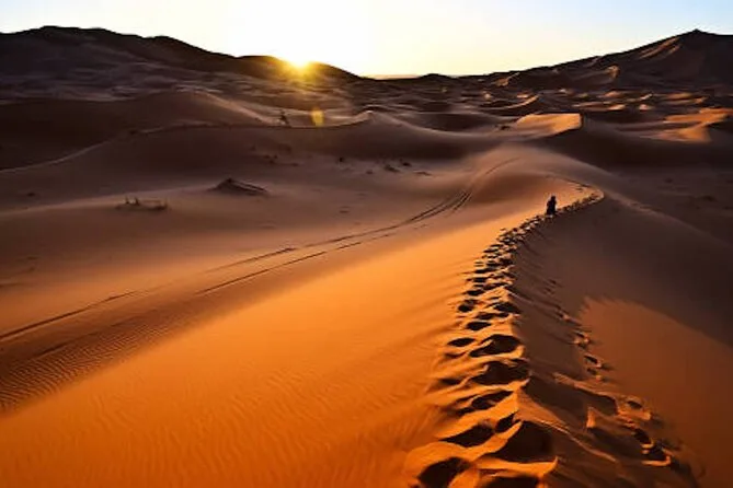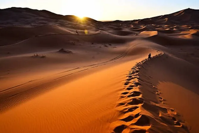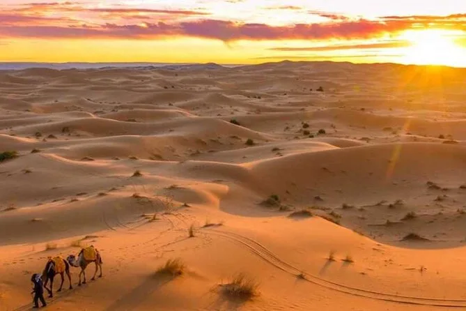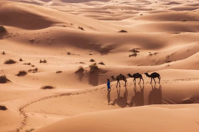 Traversez montagnes et désert de Marrakech à Fès : balade à dos de chameau à Merzouga, nuits sous les étoiles du Sahara, découverte des kasbahs anciennes et saveurs authentiques du Maroc.