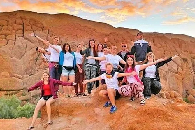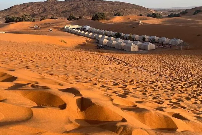 Votre circuit comprend la prise en charge à l’hôtel à Marrakech et Fès, tous les transports en véhicule climatisé, des visites guidées aux étapes clés (comme Aït Ben Haddou), des nuits dans un hôtel de la vallée des Roses et un camp nomade à Merzouga (avec dîner et petit-déjeuner), ainsi que des activités comme le sandboard et la balade à dos de chameau dans les dunes du Sahara.