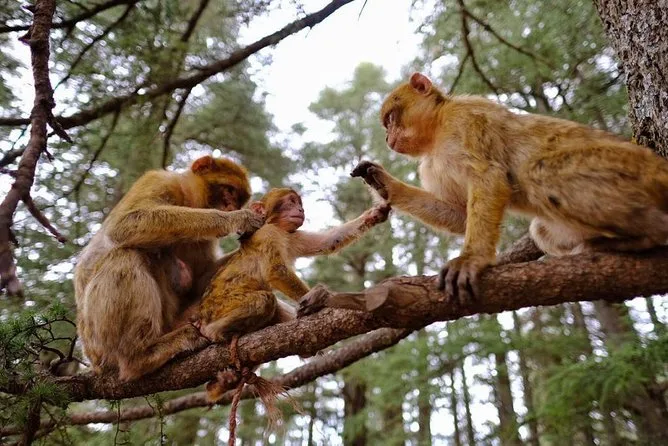 Le déjeuner était simple mais parfait : un tajine berbère dans un café juste au bord du ruisseau. Le propriétaire nous a parlé de l’histoire de sa famille ici pendant que des singes s’agitaient autour, espérant quelques restes. Nous avons eu tout le temps de nous détendre avant de remonter—si vous n’êtes pas pressé, ça vaut la peine de rester pour un thé à la menthe et observer les pêcheurs locaux ou les enfants qui s’éclaboussent dans les eaux peu profondes. Nous sommes revenus à Marrakech vers 18h, fatigués mais ravis.