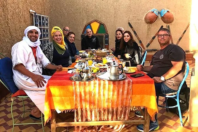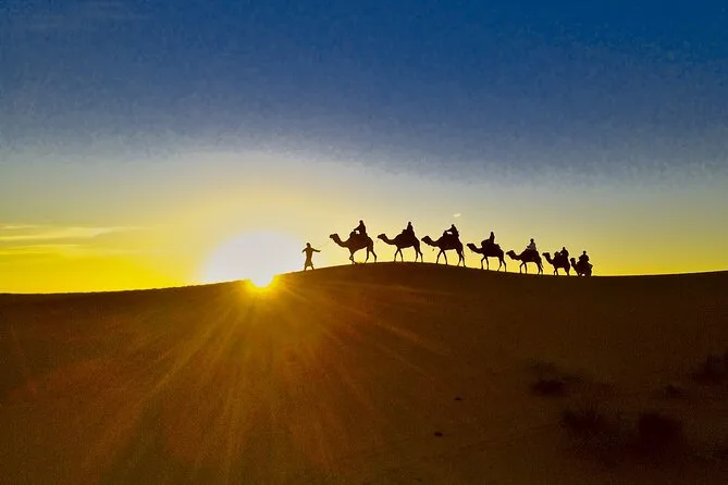 Cette excursion comprend le transport en véhicule climatisé, une balade à dos de chameau dans les dunes d’Erg Chebbi au coucher du soleil, deux nuits (une en maison d’hôtes près des gorges du Dadès et une en camp dans le désert), ainsi que le petit-déjeuner et le dîner chaque jour. Les guides sont locaux — toujours prêts à partager leurs histoires ou répondre à vos questions en chemin.