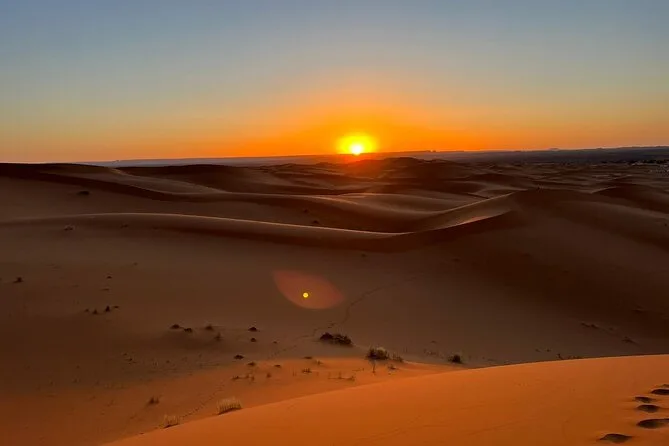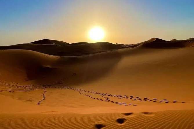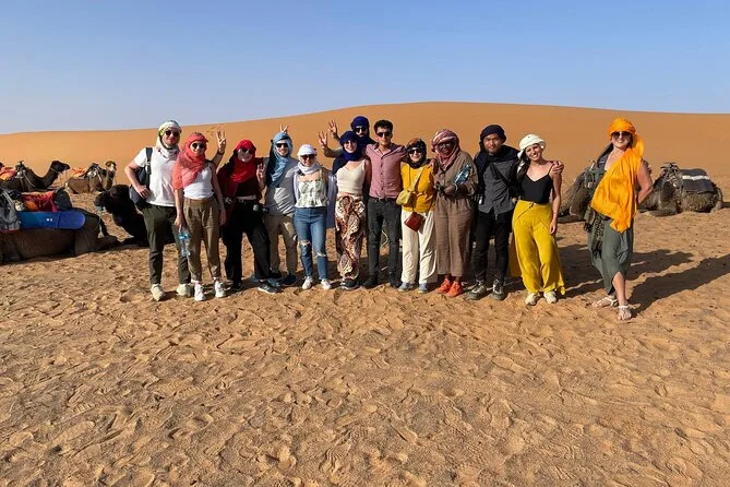 Votre voyage comprend la prise en charge à votre hôtel ou riad à Marrakech, tous les transports en véhicule climatisé avec un chauffeur expérimenté, des visites guidées à Ait Benhaddou et dans les gorges du Todra, des nuits en hôtels ou maisons d’hôtes confortables (avec salles de bain privées), la pension complète — y compris un dîner sous les étoiles du Sahara — ainsi que votre trek à dos de chameau dans les dunes de Merzouga. L’accès fauteuil roulant et les sièges bébé sont également disponibles.