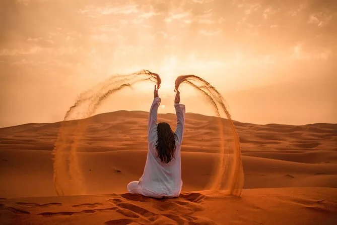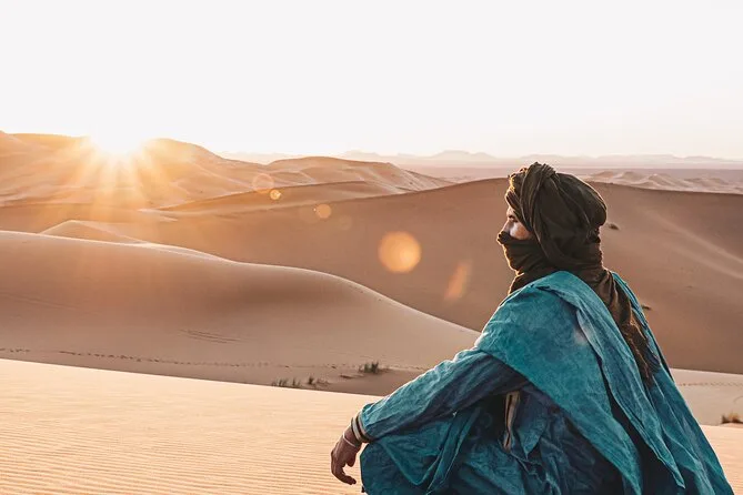 Votre voyage comprend la prise en charge depuis votre hôtel ou riad à Fès, tous les transports en 4x4 ou van climatisé avec un chauffeur-guide anglophone à travers les paysages changeants du Maroc. Vous bénéficierez d’un dîner et d’un petit-déjeuner chaque soir—d’abord dans un campement saharien sous tente avec sanitaires partagés après votre balade à dos de chameau dans les dunes d’Erg Chebbi ; ensuite dans une chambre privée avec salle de bain aux gorges du Dadès ou à Ouarzazate. Le dépôt à votre hébergement à Marrakech conclut votre traversée sans retour en arrière.