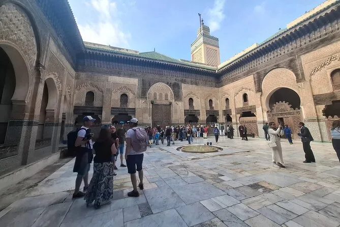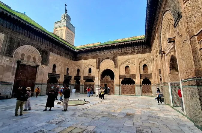Votre journée comprend la prise en charge à votre hôtel ou riad à Fès, un guide local passionné qui partagera ses histoires tout au long de la visite des sites majeurs comme la médersa Bou Inania et la tannerie Chouara, ainsi qu’une pause café ou thé à la menthe marocaine avant de retourner à votre hébergement.