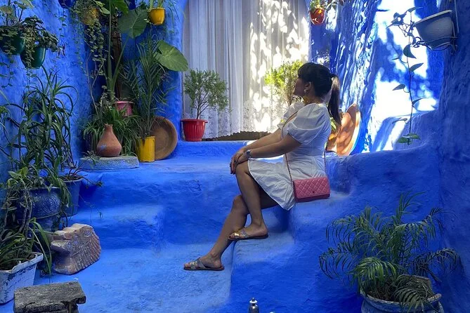 La route vers Chefchaouen serpentait à travers des collines verdoyantes avant d’offrir la première vue des maisons bleues dévalant la montagne — impossible de ne pas prendre trop de photos depuis le point de vue. L’après-midi était libre pour flâner : chats paressant sur les marches, commerçants discutant en espagnol ou en arabe, eau ruisselant à la cascade Ras el-Maa juste à la sortie de la ville.