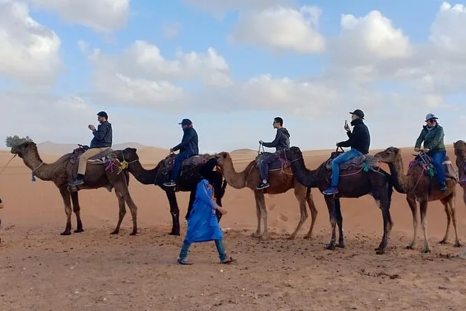 Votre voyage comprend un transport privé climatisé avec un guide local anglophone de Marrakech à Merzouga et retour ; une nuit en hôtel dans les gorges du Dadès et une nuit dans un camp de luxe dans le désert ; une randonnée à dos de chameau avec turbans fournis ; des sessions de sandboard ; des dîners copieux autour du feu de camp ; ainsi que les petits-déjeuners quotidiens et le transfert hôtel inclus chaque matin avant le départ.