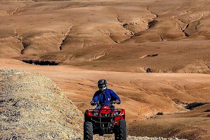 Votre journée comprend la prise en charge et le retour depuis Marrakech en véhicule climatisé, la visite avec un guide local parlant anglais (et français ou espagnol si besoin), un arrêt dans une coopérative d’huile d’argan pour voir leur savoir-faire, une balade en quad d’une demi-heure (deux personnes par quad), une promenade à dos de chameau dans le désert d’Agafay au coucher du soleil, ainsi qu’un dîner complet sous forme de buffet berbère avec musique live avant le retour en ville.