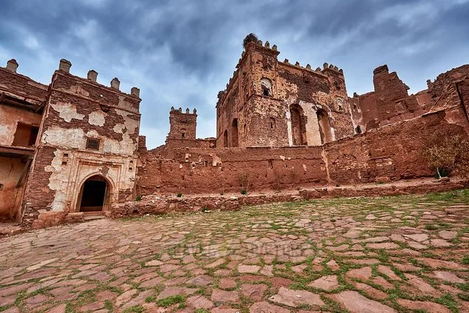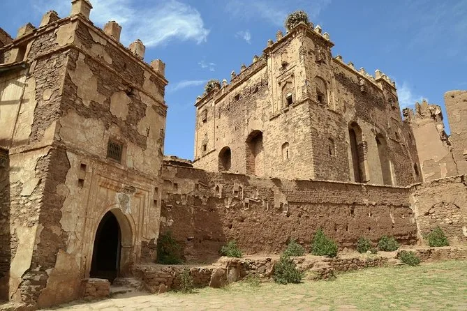 Nous avons redescendu à travers des villages où les enfants saluaient notre minibus et les femmes portaient des paniers sur des chemins poussiéreux. Notre prochaine étape : la kasbah de Telouet. Elle n’est pas restaurée à neuf — certains murs s’effritent — mais c’est ce qui fait son charme. À l’intérieur, les carreaux fanés et les plafonds en cèdre sculpté racontent la puissance passée de la famille Glaoui. Notre guide nous a expliqué comment ce lieu contrôlait autrefois les routes caravanières venant du Sahara ; on imagine presque les marchands arrivant avec sel et épices.