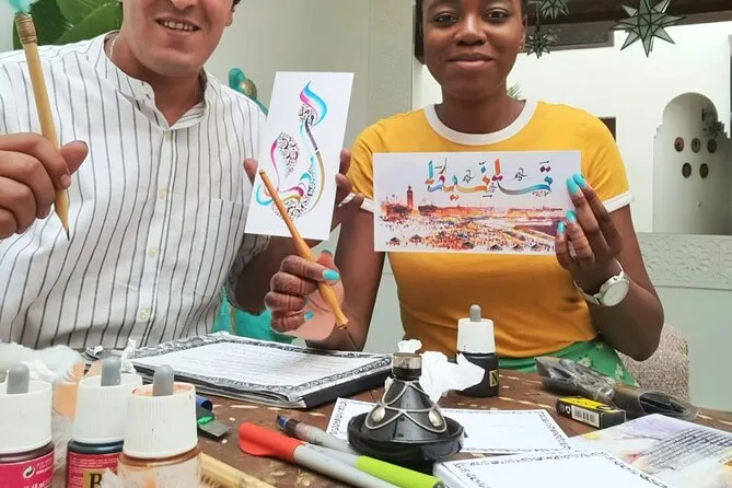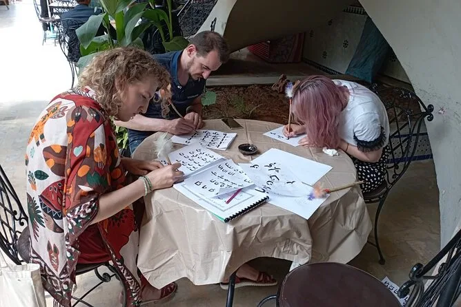 Plongez dans un coin tranquille de Marrakech pour apprendre la calligraphie islamique avec un maître local. Initiez-vous à ces techniques anciennes, savourez un thé à la menthe avec des pâtisseries fraîches, et repartez avec votre œuvre manuscrite et un cadeau spécial — un souvenir inattendu qui reste longtemps.