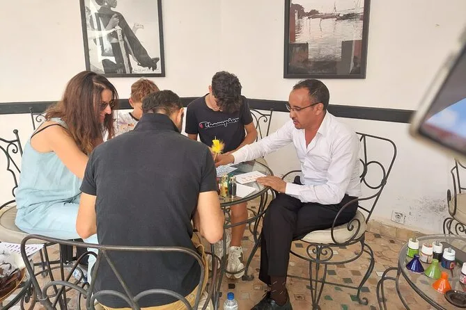 Vous dégusterez du café ou du thé accompagnés de pâtisseries marocaines traditionnelles pendant la séance.