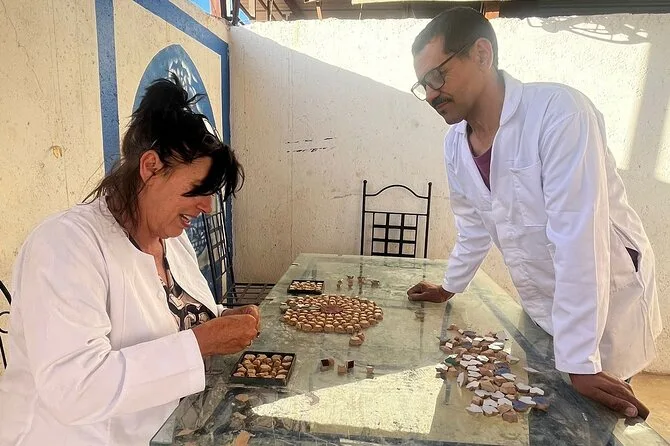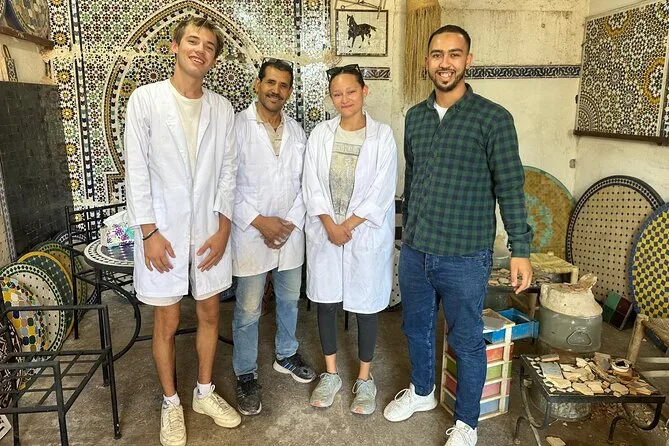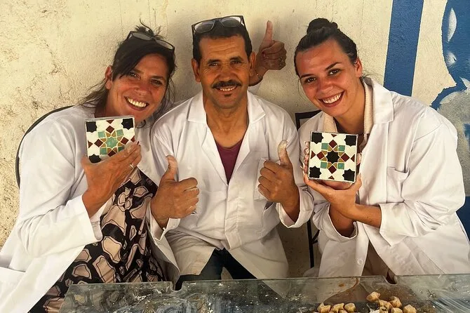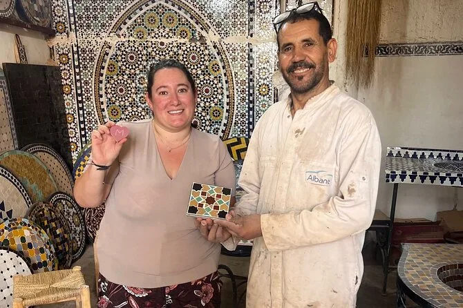 Votre journée comprend le transfert depuis votre hébergement en véhicule climatisé, tout le matériel pour créer votre mosaïque marocaine (que vous emporterez chez vous), l’accompagnement d’un maître artisan à chaque étape, une bouteille d’eau pour rester hydraté, et du thé à la menthe traditionnel servi pendant la session créative, avant un retour accompagné à la fin.
