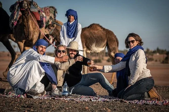 Votre journée comprend la prise en charge et le retour à l’hôtel à Marrakech, tout l’équipement pour la balade en chameau et quad (casques inclus), boissons fraîches et thé marocain avec les locaux, wifi et casiers au camp de base, accompagnement par des guides sympathiques, et un déjeuner traditionnel tagine ou couscous avant le retour en ville.