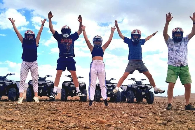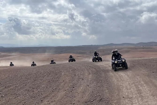 Votre journée comprend la prise en charge à votre hébergement en véhicule climatisé, l’utilisation d’un quad avec casque et équipement de sécurité (lunettes motocross et couvre-chef), ainsi qu’une pause thé à la menthe traditionnelle dans une tente berbère avant le retour vers Marrakech.