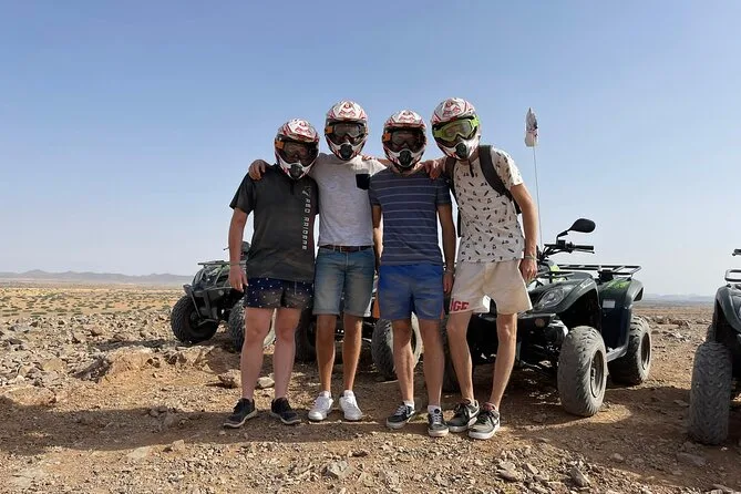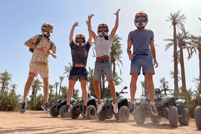 Votre journée comprend le transfert aller-retour depuis votre hôtel à Marrakech, de l’eau en bouteille pendant l’activité, tout l’équipement nécessaire (casque, lunettes, et ces filets rigolos pour les cheveux), une assurance responsabilité civile pour votre tranquillité d’esprit, et—peut-être le meilleur—une pause thé traditionnel marocain avec crêpes dans un village berbère avant de repartir à travers la palmeraie.
