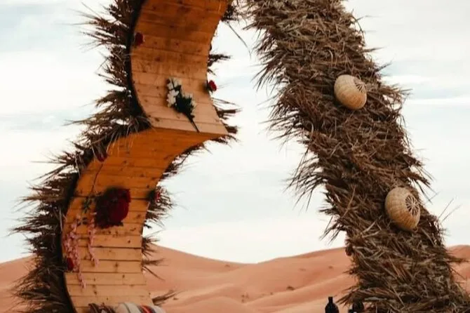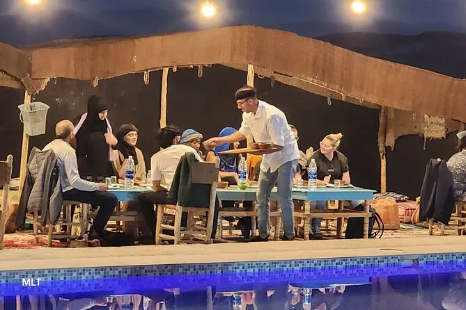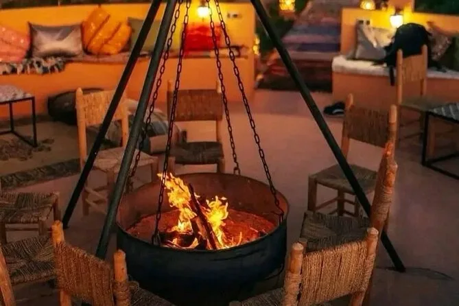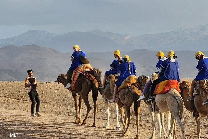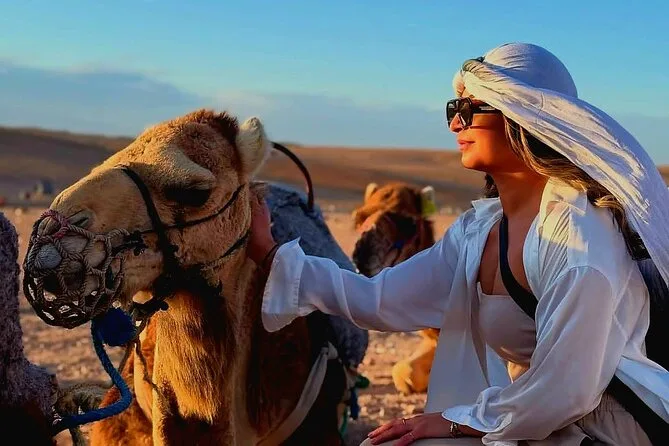 Votre journée comprend un transport climatisé avec prise en charge et retour à votre hébergement à Marrakech, un verre de thé à la menthe marocain à l’arrivée avec l’accueil berbère, une balade guidée à dos de chameau au coucher du soleil dans les dunes d’Agafay, un spectacle musical au coin du feu au camp, un dîner sous les étoiles, ainsi que le petit-déjeuner si vous passez la nuit — tout est prévu pour que vous profitiez pleinement.