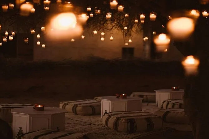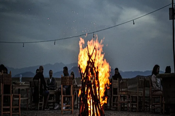 Quittez Marrakech pour les vastes étendues d’Agafay, savourez un thé à la menthe avec les locaux avant une balade à dos de chameau au coucher du soleil. Puis partagez musique et rires autour d’un feu de camp, avec un dîner sous les étoiles du désert. Pour une soirée simple et magique, c’est un souvenir qui vous accompagnera longtemps.