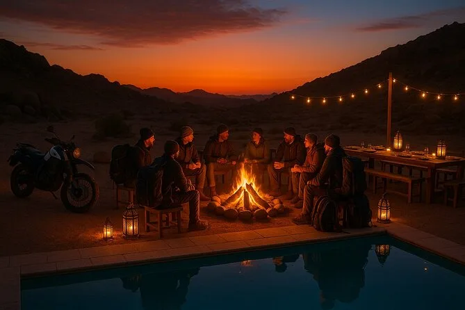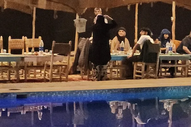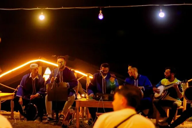 Plus tard, la musique a commencé — tambours et chants autour d’un feu qui crépitait plus fort que les conversations. Le dîner avait ce goût fumé et réconfortant ; je crois que c’était un tajine d’agneau, mais honnêtement, je n’ai pas trop demandé, mes mains étaient occupées à déchirer le pain. Quelqu’un a essayé de m’apprendre une chanson berbère (je l’ai sûrement massacrée), mais personne ne semblait s’en formaliser. Il y a quelque chose de spécial à manger dehors avec des inconnus qui deviennent des amis le temps d’une soirée — peut-être c’est l’air du désert, ou le thé à la menthe qui parle.
