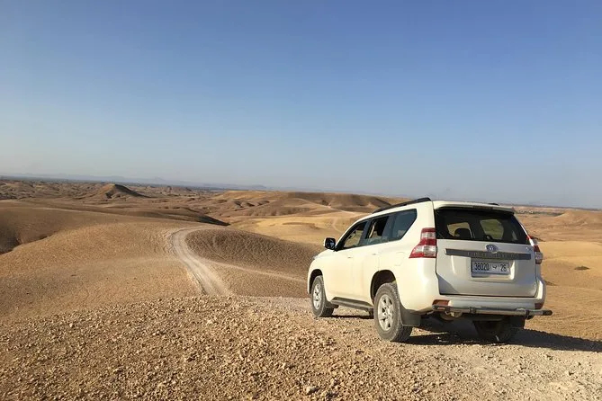 Quittez Marrakech pour une journée d’aventure dans le désert d’Agafay en 4x4 avec un guide local. Dégustez un thé à la menthe au lac Lalla Takerkoust, partagez un tajine maison dans une maison berbère avec vue sur les vergers, et essayez une balade à dos de chameau avant de revenir en ville au coucher du soleil. Rires, saveurs authentiques et instants de calme inattendus vous attendent.