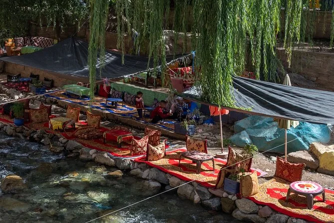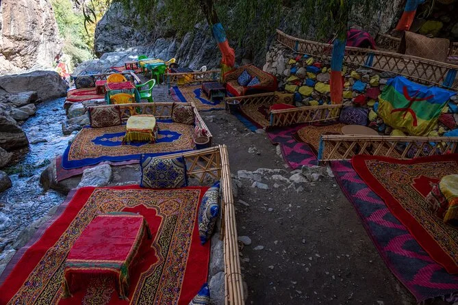 Setti Fatma était animée, mais pas de façon désagréable. Des familles locales pique-niquaient au bord de l’eau, leurs rires résonnant contre les rochers. La brume des cascades était un vrai bonheur après des heures dans cette chaleur sèche ; je me suis laissé asperger jusqu’à ce que ma chemise soit trempée. Le déjeuner, un tagine au bord de la rivière — rien de sophistiqué, juste du pain pour saucer, pendant qu’on regardait les gens essayer (et souvent échouer) à traverser les pierres sans glisser. Je repense souvent à cette vue : la lumière qui filtre à travers les peupliers, la vapeur qui s’élève des verres de thé, tout le monde parlant en arabe, en français, et je ne sais quoi d’autre, tous en même temps.