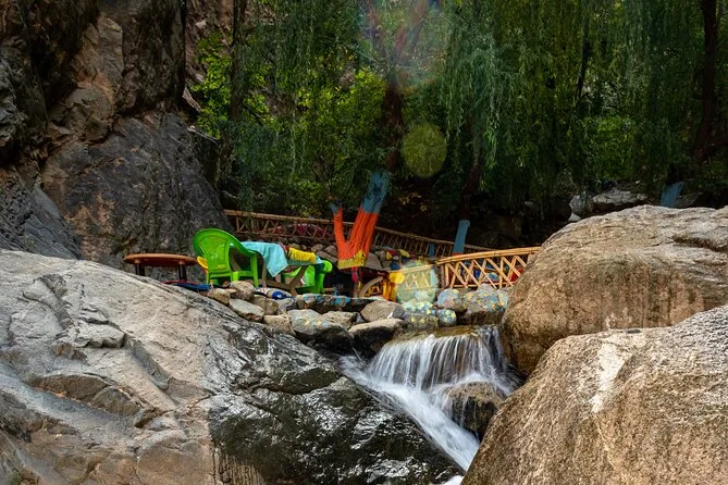 Vous traverserez vergers et villages berbères dans la vallée de l’Ourika, guidé par des locaux qui connaissent chaque virage. Attendez-vous à des déjeuners au bord de la rivière près des cascades de Setti Fatma et à des arrêts improvisés pour des figues fraîches ou des photos. L’air de la montagne est frais, même quand Marrakech étouffe de chaleur — vous aurez l’impression d’être ailleurs avant même d’être à mi-chemin.