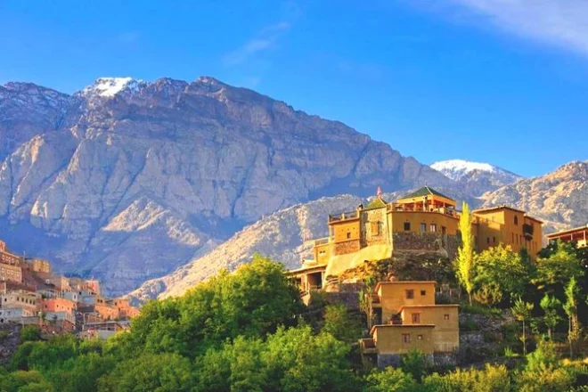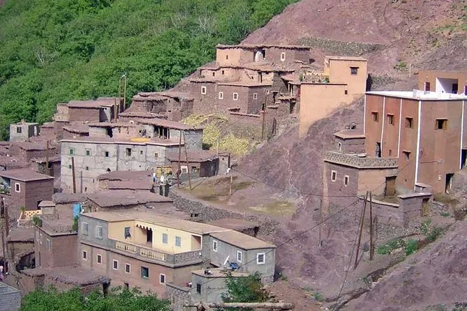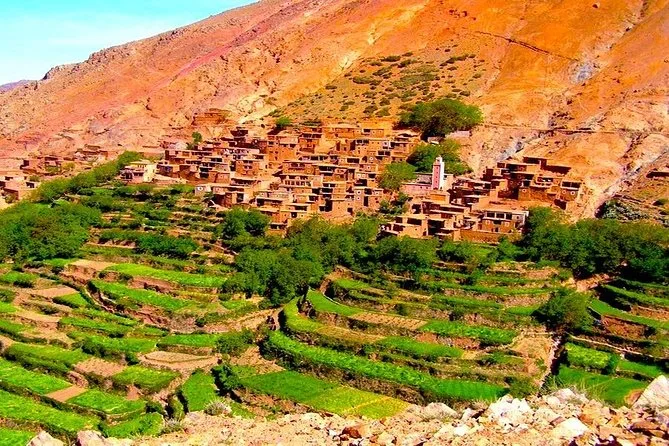 Votre journée comprend le transport aller-retour depuis Marrakech avec prise en charge, de l’eau en chemin, une randonnée culturelle guidée à travers les villages de la vallée d’Imlil, une balade à dos de chameau au bord de la rivière Moulay Ibrahim, ainsi qu’un déjeuner berbère traditionnel servi avec thé à la menthe avant le retour en après-midi.
