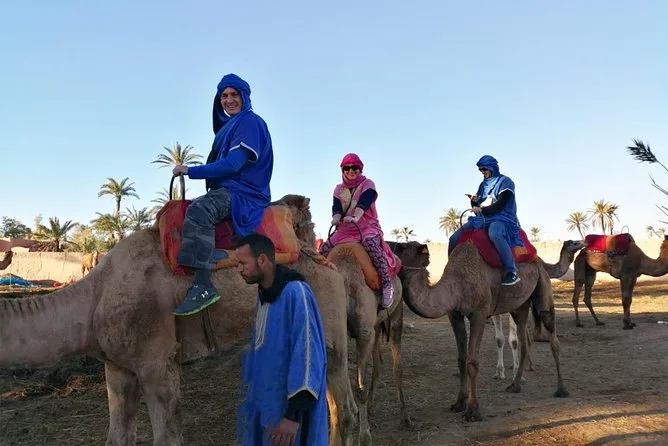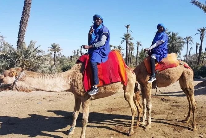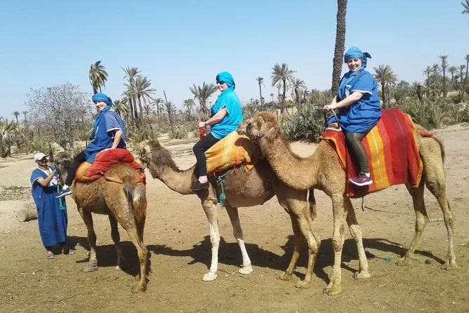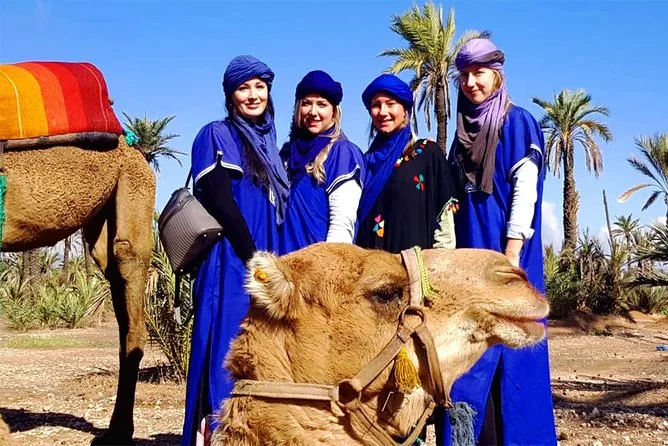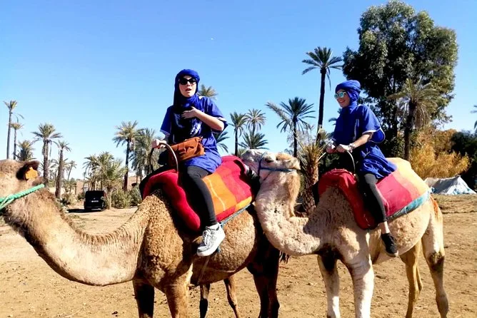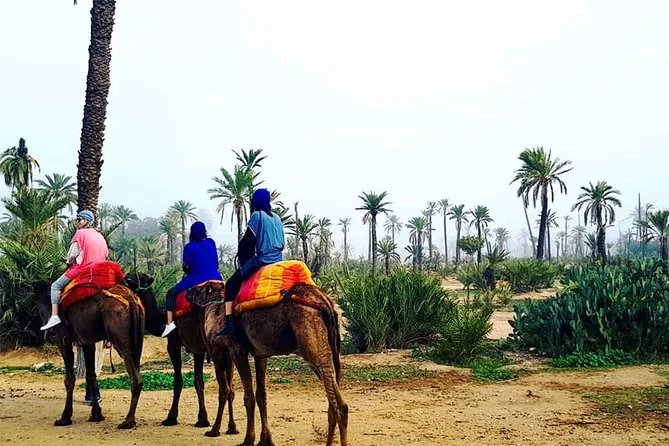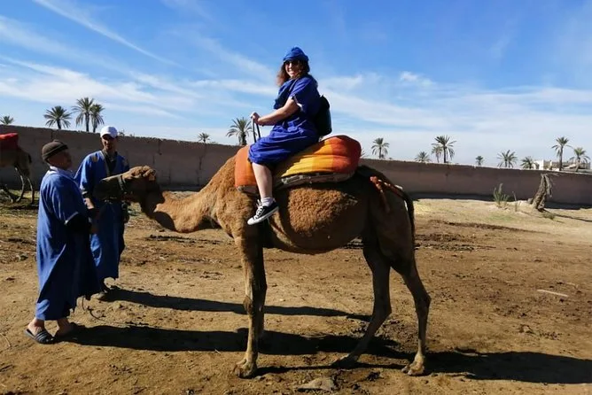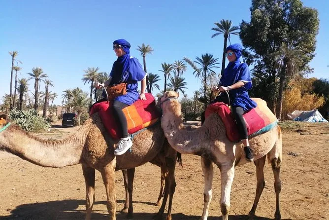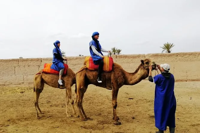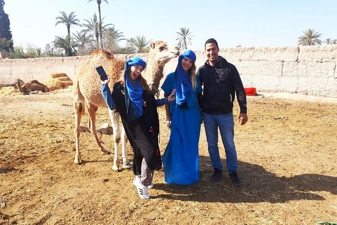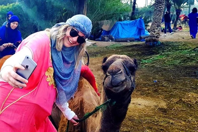 Votre journée comprend la prise en charge et le retour à l’hôtel en véhicule climatisé, des consignes faciles avec des guides locaux sympathiques, la tenue saharienne traditionnelle (jilbab et foulard), environ 1 heure de balade à dos de chameau dans l’oasis de la Palmeraie de Marrakech, ainsi qu’une pause partagée autour d’un thé à la menthe marocain avant de revenir à votre hébergement.