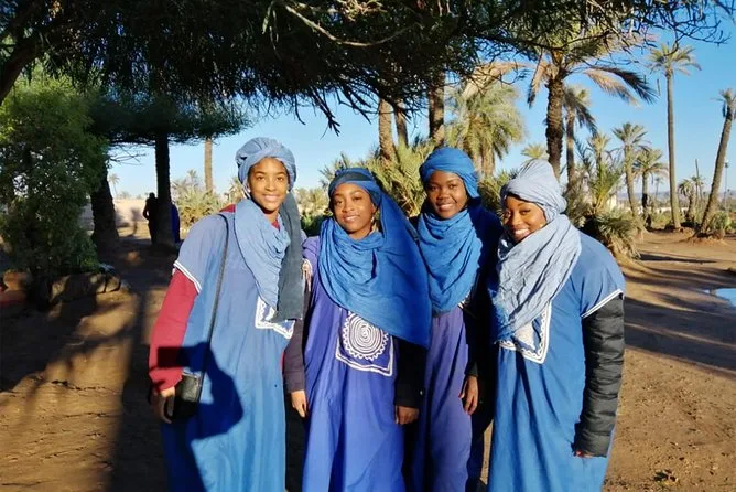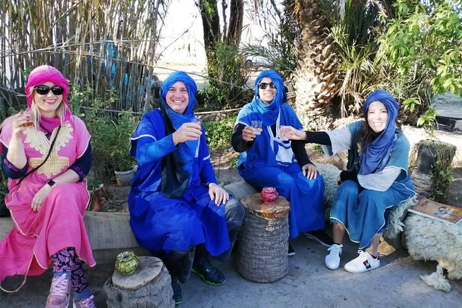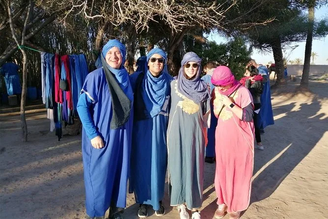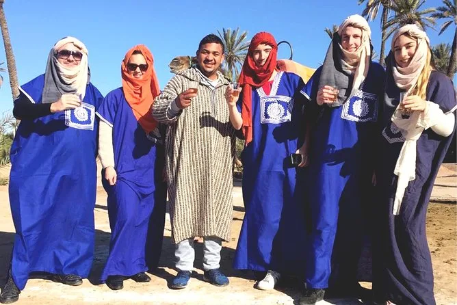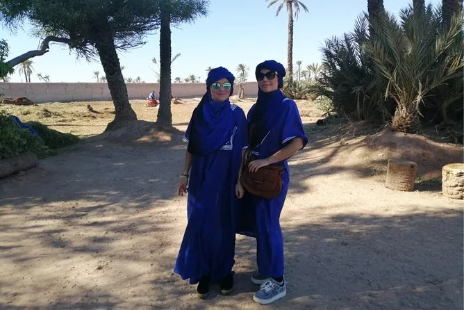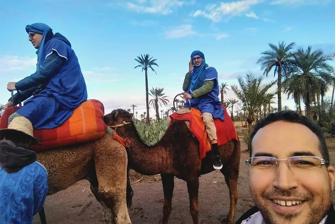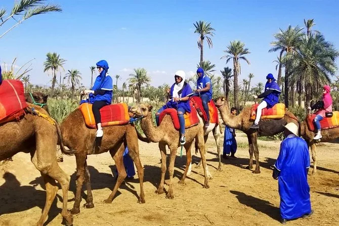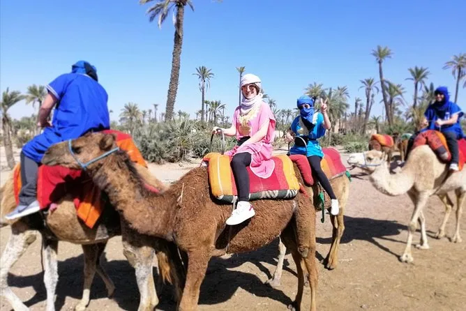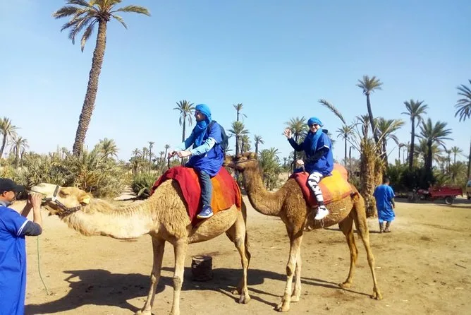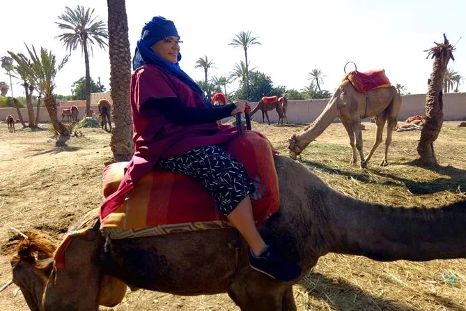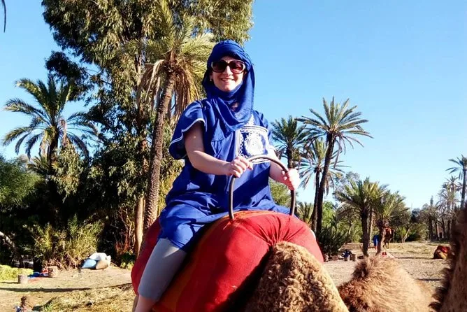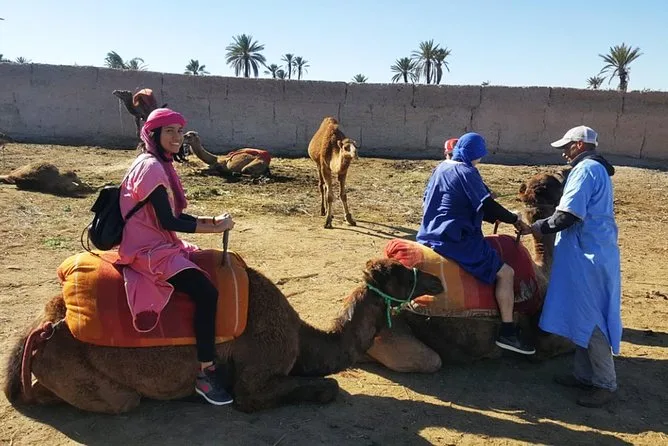 Votre journée comprend la prise en charge et le retour à l’hôtel en véhicule climatisé, des consignes faciles avec des guides locaux sympathiques, la tenue saharienne traditionnelle (jilbab et foulard), environ 1 heure de balade à dos de chameau dans l’oasis de la Palmeraie de Marrakech, ainsi qu’une pause partagée autour d’un thé à la menthe marocain avant de revenir à votre hébergement.
